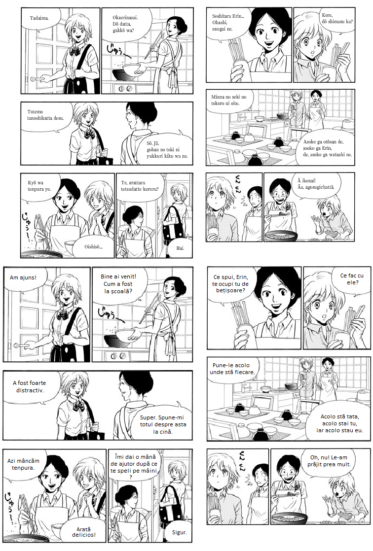 Nu uitați să încercați prima dată să traduceți de unul singur paginile în romaji (nu le-am pus în kana, că am zis că vă iau mai ușor, așa, în primele 5 episoade), iar mai apoi să vă uitați la traducerile noastre.