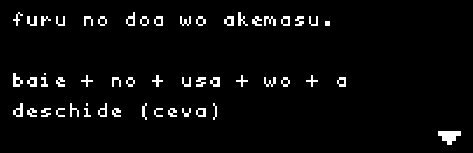 Descoperă casa lui Bitsy, acest personaj super minimal și drăguț, plinbându-te prin ea și interacționând cu obiectele din aceasta. Fiecărui obiect îi este atașat un text în Romaji care exprimă o idee simplă. Ca de exemplu…