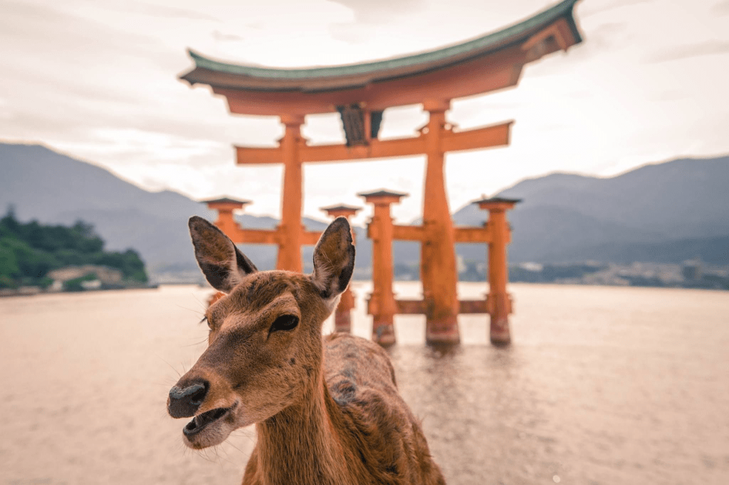 Continuând pe linia de animăluțe legate de religia shinto, pentru japonezi nu e nimic mai sacru precum căprioarele sau „shika”. Căprioarele au o prezență veche în cultura japoneză, această vietate de pădure fiind țesută nu numai în shinto-ism ci și în budism, legată în special de zeul tunetului „Takemikazuchi no Mikoto”, care este de asemenea un zeu războinic asociat și cu „sumo” sau săbiile japoneze „katana”. Se spune că atunci când acesta a fost invitat la templul „Kasuga” din Nara, acesta a ajuns pe o căprioară albă divină. În mare parte căprioarele sunt asociate cu zeii fiind considerate mesageri sau chiar zei în deghizare. Putem trage o linie clară spre vulpi și zeița Inari datorită naturii divine de care se bucură amândouă animalele.