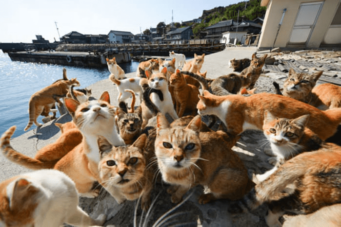 Un loc interesant pentru a te distra cu pisicile japoneze se află pe insula „Tashirojima”, recunoscută ca una dintre insulele pisicilor (japonezii ăștia au insule pentru tot se pare). Istoria locației este interesantă pentru că justifică prezența pisicilor. În trecut exista această practică de a crește viermi de mătase pe insulă, recoltele oamenilor însă fiind devastate de șobolani, aceștia decid să crească și pisici laolaltă pentru a combate efectele dăunătorilor. Dacă ajungeți acolo o să fiți uimiți de liniștea și aerul sacru din jurul acelui templu, iar prietenii noștri vărgați nu o sa fie niciodată prea departe, deci dacă vă simțiți priviți, probabil așa și este.