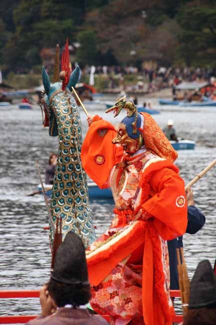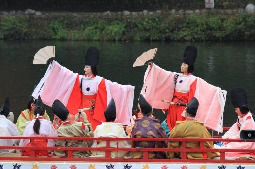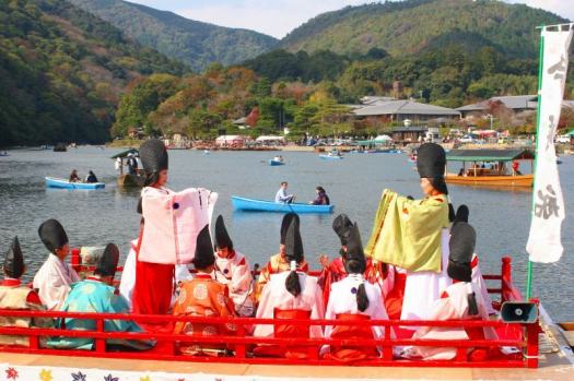 Punctul culminant al festivalului este reprezentat de râul Oi, pe suprafața căruia se pot observa cinci bărci decorate în stilul Perioadei Heian, cârmuite de japonezi în imitația unor nobili și curtezani îmbrăcați în haine tradiționale din aceeași perioadă. Scopul acestora este rememorarea acestui interval istoric, iar pentru a oferi o notă de grație, aceste persoane redau arta tradițională japoneză, precum muzica sau recită noh și kyogen.