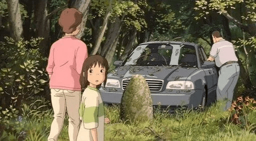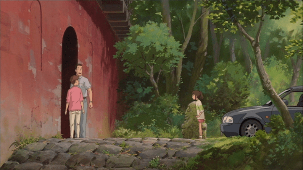 La finalul filmului, după ce Chihiro revine în lumea reală, pare că a petrecut foarte puțin timp în lumea spiritelor, însă mașina familiei e acoperită de praf și frunze🍂, două elemente care evidențiază trecerea timpului⏳, și perioada îndelungată în care Chihiro a fost de fapt absentă din lumea reală. În kamikakushi, timpul se scurge diferit în cele două lumi.
